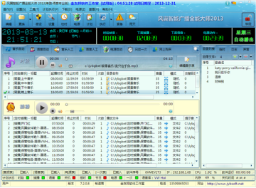风翼智能广播全能大师是由金友邦软件工作室推出能够对需要播出的广播进行智能处理,支持自动音频和人工音标播放,提供了专业全面的背景音乐、广播、播音、外设电源管理、定时关机、整点报时的一体化解决方案。