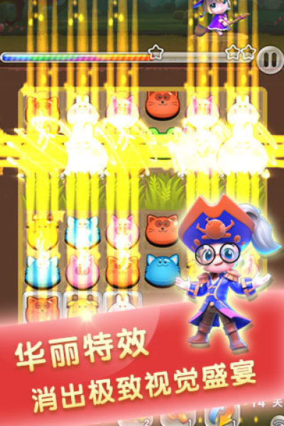 玩家通过冒险可以解救和解锁魔法角色,魔法角色在消除过程中可以施展强大的技能帮助玩家达成目标,角色在适合自己的场合,将发挥出更大的威力噢!