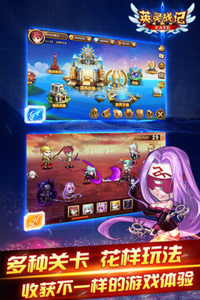 fate英灵战记是一款根据日本超人气动漫命运守护夜改编的rpg策略手游,游戏中的所有英雄人物都是动漫中出现过的,fate、金闪闪、rider等等英灵都会在本作中出现,玩家可以收集他们,去挑战各种系统关卡和其他玩家。