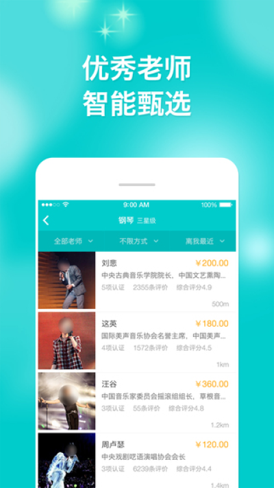 我们拥有中国最多的实名认证艺术老师,更有完善的师资认证系统和老师星级评价体系。致力于帮助您轻松找到适合自己的好老师。