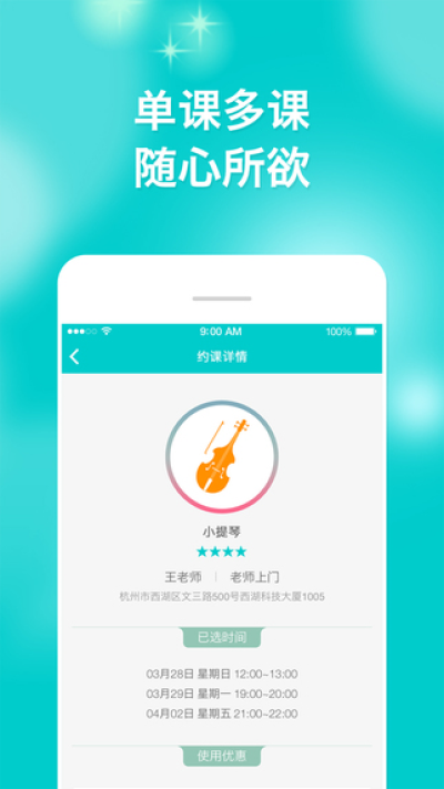 我们提供学生根据老师信息自主约课的渠道,还有多样的上课方式可以满足学生的需求。课后更有师生互评系统来跟进课程进度和效果,方便学生了解自己对于该艺术课程的掌握程度及真实水平。