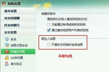 (1)打开“系统设置”,在“安全设置 >防骚扰设置”中,把“不接收任何临时会话”的勾去掉。