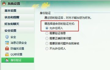 (2)打开“系统设置”,在“安全设置 > 身份验证”中设置“允许任何人”和你交流对话。