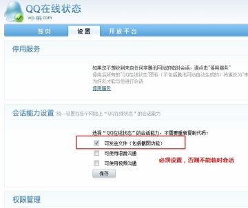 2、登录后,点“设置”,按下图所示,在“可发送文件”打勾(必须设置,否则不能发起临时会话)。
