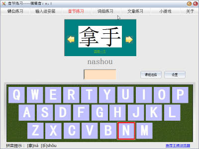 在此软件的练习过程中,都有汉字对照的拼音提示,键位提示,你不用担心不熟悉某些汉字的拼音,就算是多音字都会有相应的拼音提示。