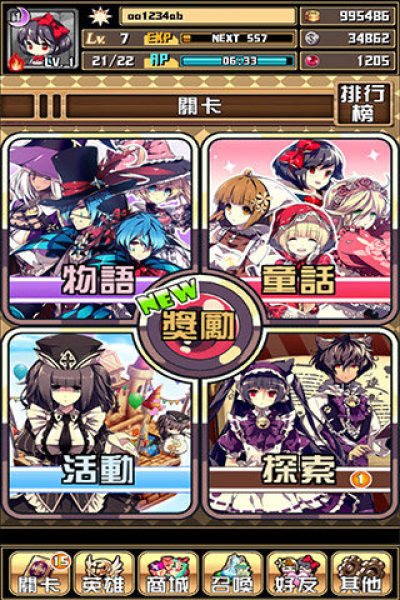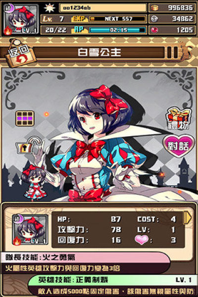 当收集到某些特定角色后便能开启童话世界,每个童话角色都有自己完整的故事,让收集变的更有趣味。童话可以分为两种。1.正常的童话,以《灰姑娘》为例,使用灰姑娘解锁的故事便是我们熟知的童话剧情,但如果是使用后母解锁故事剧情的话故事线会变成黑暗童话。