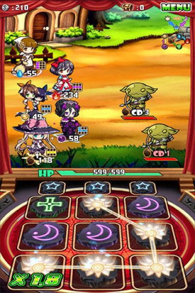 九宫格的连线玩法,连线越多,伤害越高。同时战斗机制也很充分,角色相克分为两种,一是势力克制,日克月克星;二是属性相克,水克火克风克土克水,光暗属性互克。角色的技能除了常规的主动技能外和队长技能外,还有一个专属的被动技能,按要求连线后即可发动。在游戏的前期,敌人相对较弱,被动技能的意义并不是很大,但在后期,随着敌人不断的增强,如何合理的使用被动技能,提高连接comble数以便造成更高的伤害是游戏后期索要考虑的。