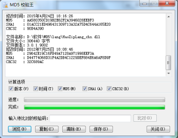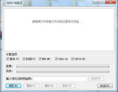 MD5 校验王可以对任意文件进行版本,文件时间,MD5值,SHA1值,CRC32值的校验。