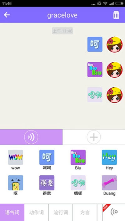 “哇呜WOW”是一款"自动播放语音"的快捷聊天软件,可添加手机、QQ与微信好友,内置语音包括日常用语、当下流行语、方言以及自定义语音等。