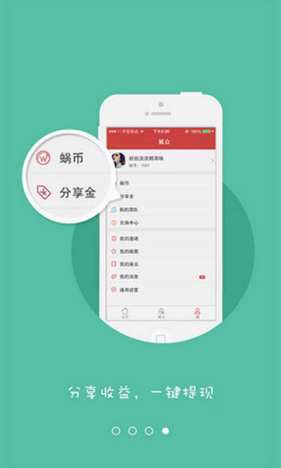 5.一键分享蜗号邀请好友,收获无限代奖励。