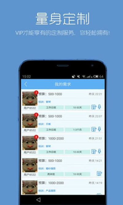 让“天下没有难找的课程”,让学员在众多、认证老师中,以最省的学费、花最少的精力、用最快的时间、享最安全的支付找到自己最满意的课程。学员只需通过手机APP便捷的发布学习需求,即可享有老师为你一对一量身定制课程,集万千宠爱于一身,彰显你的个性化学习需求,享受极致的求学体验。