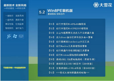 首先大雪花U盘启动工具,能识别ghost也能直接识别ISO包,也支持WIM格式安装。 能准确自动找到镜像包,无需手工添加寻找,识别能力是其他U盘工具的三倍。装机启动零失败,各类配置的新旧电脑都能装系统,绝不会导致电脑崩溃。