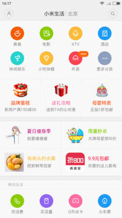 小米生活是专门为现代都市群体量身定做的移动生活应用,彻底解决大家的所有生活问题,如叫外卖、充值、看电影和ktv唱歌等等,功能十分的全面,是大家手机中的必备应用!