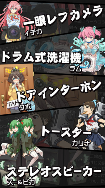 家电少女是岛国Aniplex Mobile推出的一款角色扮演类游戏,在游戏中各种萌萌哒的妹纸让你选择哦,对于宅男来说可谓是福利了。