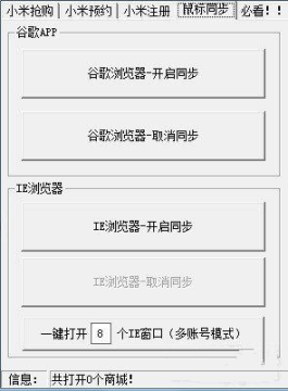 在抢购小米手机的时候最费时间的就是输入验证码了,很多米粉都以为输入的慢而没有抢到喜欢的小米手机。小米抢购预约自动打码软件是一款集关键字、ID元素、JS、图片四大点击模式为一体的自动点击类网页辅助软件,同时也是一款小米抢购软件,用来抢购小米官网活动请保持默认即可,建议同一个账号开多个页面,这样能提高抢购成功率。