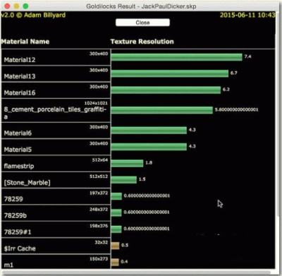 当我们要对图像模型的界面上贴图的时候,怎么选择才能够达到最好的效果呢?Goldilocks是一款可以帮助用户分析SketchUp模型中所使用贴图的像素与模型的尺度关系的插件,在小尺度模型上如果使用高像素的贴图会使文件增大,运行变慢,大尺度的模型如果使用了低像素的贴图,会使得贴图看上去非常模糊,效果不好。