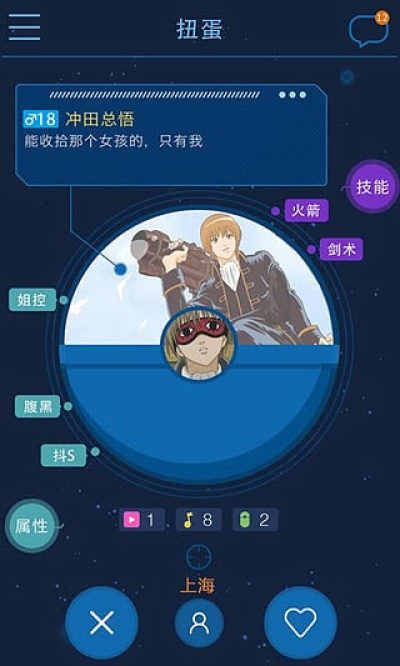 扭蛋是专为二次元爱好者准备的一个二次元网络社区,所有单身朋友都可以在这里找到和自己兴趣相投的异性伴侣,是大家脱离单身的必备工具!