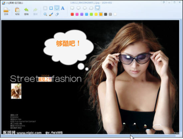 用户不仅可以在画面中添加形状线条图形,还可以为图片中的人物添加会话窗口及文字,可以通过颜色列表中的色块来更换图形颜色及文字颜色。