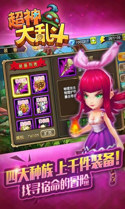 《超神大乱斗》是一款风格十分非常萌萌哒的即时动作类游戏。开启手游新世界。实施操控,把握战机,反杀就是这么刺激!人气角色与您并肩作战,华丽特效,超爽战斗,分分钟让您成为战斗狂人。