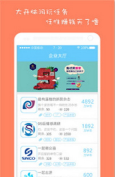 (1)企业任务 企业在平台上发布以培养大学生职业技能的任务,如校园市场推广训练,创意营销大赛等,用户可通过完成企业任务来获取相应奖励并获得相应成长值.
