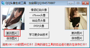 1、解压后打开软件,点击右方【更改图片】按钮,选择要生成图像的图片,点击【保存】,制作成100*100像素的头像图片