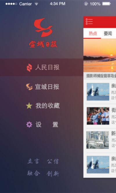 这是宣城日报的手机客户端,是宣城日报社倾力打造的新型媒体平台,分为“版面、目录、独家、互动”四大板块,即时发布新闻、即时进行互动、即时分享评论,实现移动看新闻,与人民日报同步呈现,是一个非常不错的新闻资讯应用!