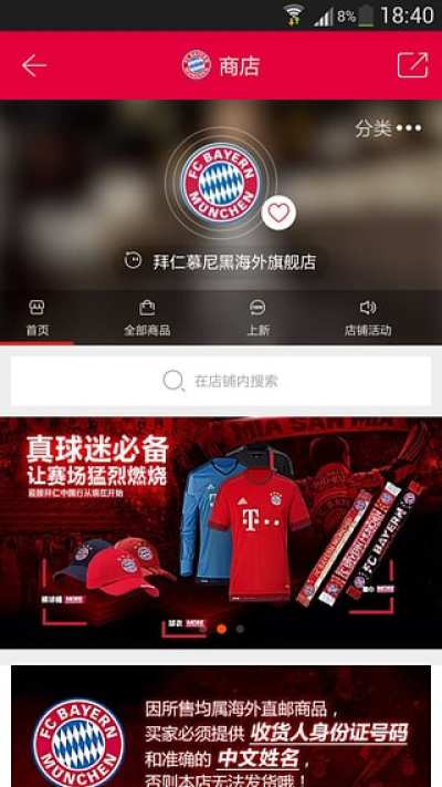 -拜仁商城:内置拜仁天猫旗舰店入口,随时随地购买拜仁商品