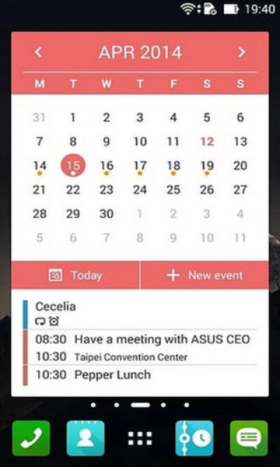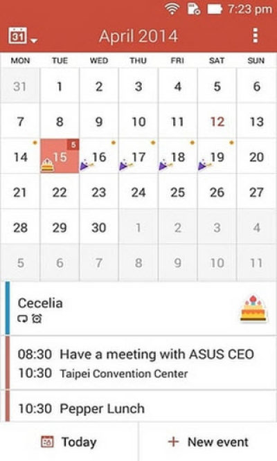 【华硕日历】深度整合ZenUI多项重要软件,是您华硕安卓装置上不可或缺的日历软件。 【华硕日历】不仅为您忠实记录每天的行程,更聪明为您汇整工作生活大小事情,呈现您在本地日历、Google日历、Exchange日历,或是其他完成同步帐户设定日历中的事件。 ZenUI也知道您的时间宝贵,为您规划最高效流畅的使用介面,是您高效工作,享受快乐生活无可取代的利器。