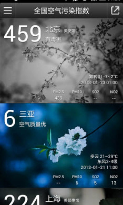 • 提供空气质量地图和排行榜,全国空气质量状况尽收眼底。