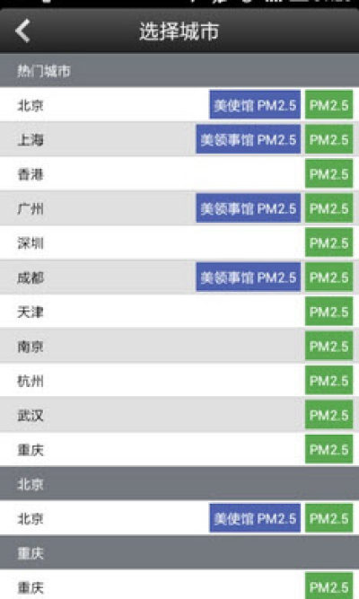 • 北京、上海、广州、成都、沈阳同时提供美使馆的监测数据作为参考。