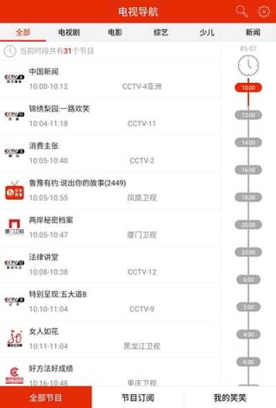 笑笑TV,其实是一款手机上的电视节目导视工具,让你提前知道每个时段的节目,从而不错过自己喜欢的电视节目。