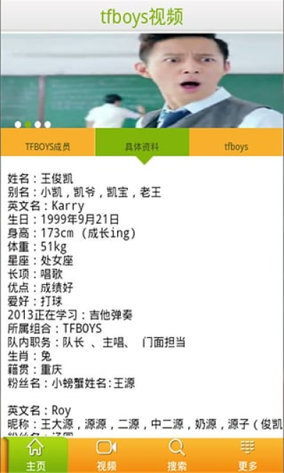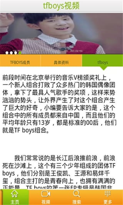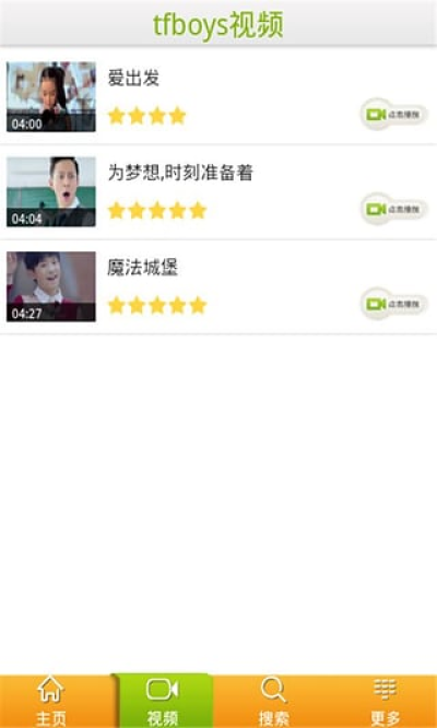 TFBOYS是目前娱乐圈人气比较高的偶像,深受广大粉丝的喜欢,小编今天给大家推荐的这款TFBOYS视频手机软件汇集了很多关于TFBOYS的视频,感兴趣的朋友可以在这里免费下载,实时了解偶像的最新动态!