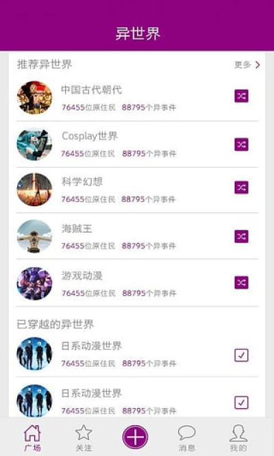 穿越交友是一款专门为二元次的小伙伴打造的社交应用软件,它致力帮助每个用户都能扮演成自己喜欢的人物角色,在某个交错的时空进行话题交流,感兴趣的朋友快加入进来吧!