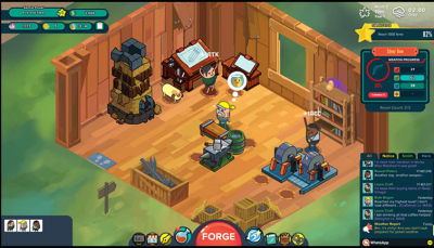 本作的UI界面和人物设计透着浓浓的卡通风格,和游戏的设计理念一样,这样清新轻松的风格就是为了让玩家能够在不知不觉中在这款游戏里耗上一个下午。游戏包含的各个小系统十分的丰富而且有趣,锻造武器的游戏题材也让游戏迷们有着相当的代入感,有意思而且粘人是本作带给笔者的游戏感受。