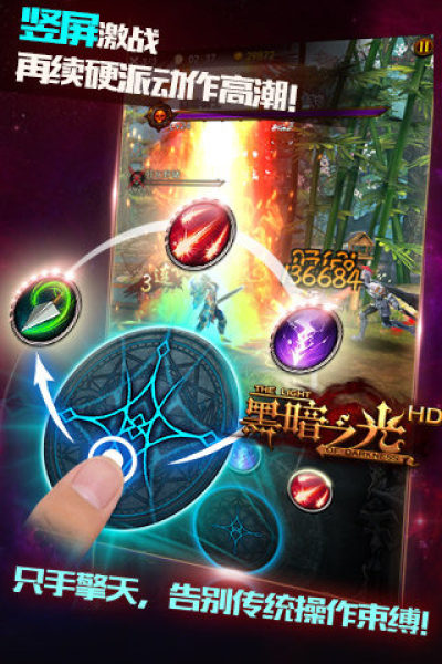 划时代新型竖屏玩法,暗黑风3D格杀手游《黑暗之光》重装上阵! 单手操控挑战无限连击,炫酷打击刺激视听极限!在宏伟史诗的多元时空中,凭手中利刃谱写猩红乐章。超百种战斗技能组合,多维度天赋随心成长,高自由度任你打造个性角色,独家军衔系统伴你征辟四方!黑暗之光,等你问鼎屠神!