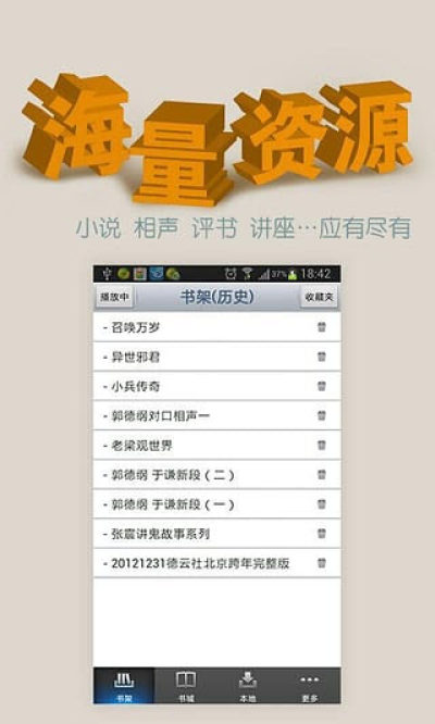 7.功能再好,不如内容丰富! 我们拥有最全的郭德纲相声库,几百部小说,上百部百家讲坛。并且不断添加新的内容。