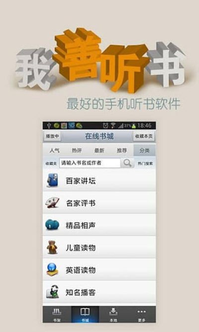 善听听书是一个非常好用的手机听书软件,这里的资源非常丰富,种类齐全,包括了有声小说、百家讲坛、名家评书、精品相声和儿童故事等等,满足各类群体的需要,平时喜欢听书的朋友可以千万别错过哟!