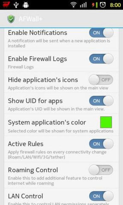 安卓手机里的软件会在后台运行,其中有一些会偷走很多的流量,小编今天给大家推荐的这款AFWall是一个非常不错的手机网络防火墙工具,效果非常不错,喜欢的朋友可以免费下载使用!