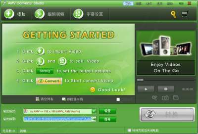 Apowersoft AMV Converter Studio 是一款功能强大的视频转换软件,可以将视频转换为 AMV 和 MTV ,同时也支持将影音文件转换为AVI,MKV,MP4,MP3,WMA,WAV,OGG,AAV,FLAV等格式。