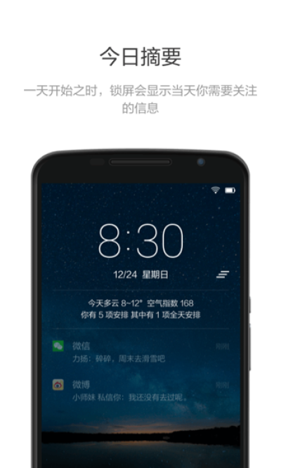 把锁屏空间还给你,处理与你息息相关的每一件事。