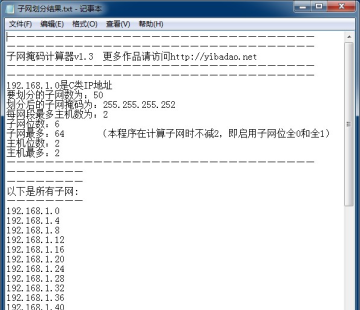 一把刀子网掩码计算器是一款免费的划分子网的辅助软件,界面简洁,操作简单,可以自动划分a、b、c类ip,可以输出划分后的子网掩码、子网位、最多子网数、主机位、最多主机数以及所有的子网列表,并可以将结果保存到文本文件。