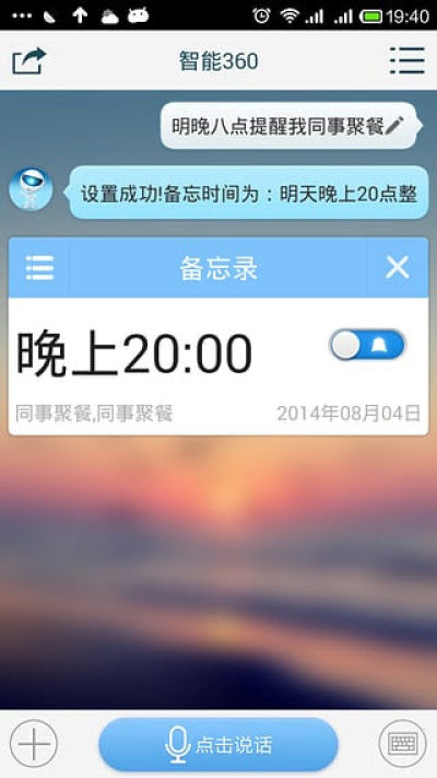 拨打电话、发送短信、文件和通讯录备忘、打开和卸载应用、时间播报等等,任何需要手动操作的工作统统可以交给智能360语音助手