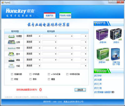 作为全球知名的PC电源厂商之一,为了方便消费者更好的选购合适自己电脑配置的电源,航嘉公司特意推出了这款专业的航嘉功率计算器软件。航嘉功率计算器可以根君您所选择的配置来计算满足该套配置稳定运行的电源功率,是不是解决了你DIY组装时的电源选择问题呢。航嘉功率计算器提供的结果准确,同时为您提供最跨界额解决方案。
