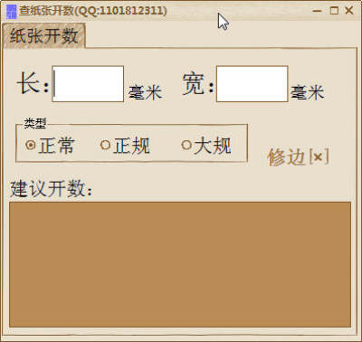 查纸张开数是一款纸张开切的参考工具,可以快速准确的计算出当前尺寸所需要的纸张开数,而且软件内部的开数表对普通常见的开数进行优化,结果更加准确,是印刷切纸 制版参考的好帮手.