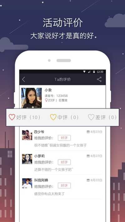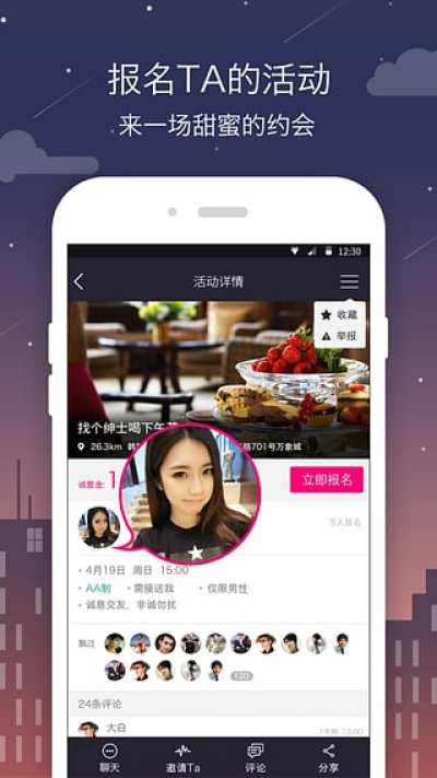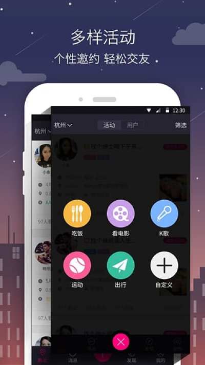 ☆多场景邀约——七秒快速建立邀约,为用户提供多种场景的线上邀约方式,吃饭、唱歌、咖啡、电影、运动、户外旅行...随你所想!