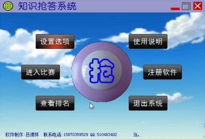 想要家里体验电视节目中非常火爆的知识竞赛环节吗?知识抢答系统是款操作简单,可以模拟真实的知识竞赛场景的免费软件。知识抢答系统使用方便、操作简单,是学校、单位、个人组织知识竞赛的好帮手。通过软件用户可以在电脑上进行知识竞赛活动,软件本着公平、公正的原则,在抢答中不会出现舞弊现象。有想要了解的不妨下载看看。