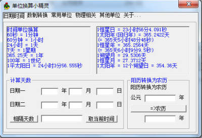 2、提供了日期时间转换、数制转换、常用单位转换、物理数制转换、光量度、光照度等