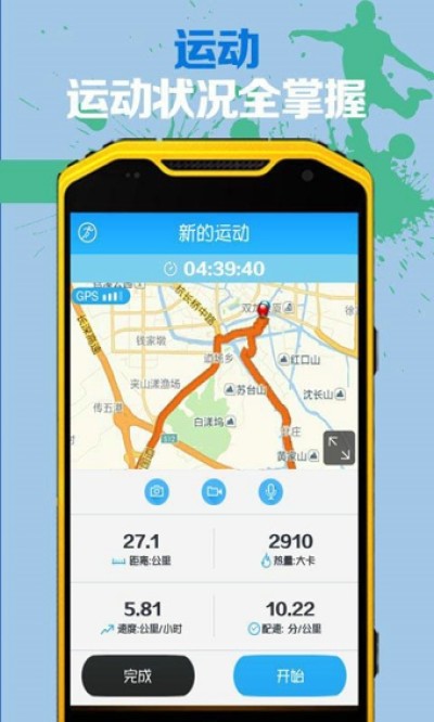 2、全程记录超准确!运动过程中,点点运动帮您准确计算运动轨迹、时间、速度、距离与卡路里,记录您的每一天运动成果。