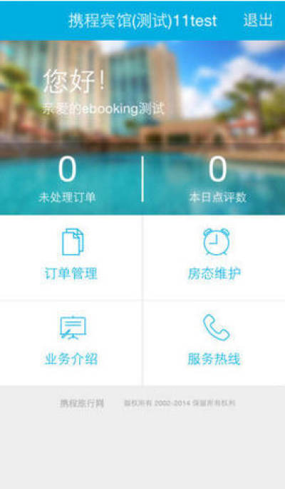 携程商家版是一款手机酒店管理软件,适用于酒店的前台、商务中心、预订部、销售部和一切能上网的电脑。目前系统支持四种语言版本,即:中、英、日、韩,同时国内用户还可使用手机来维护订单及房态信息,便于酒店实时管理。