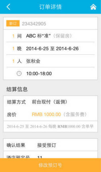 手机上可进行接受、拒绝、修改预订号等各类操作;